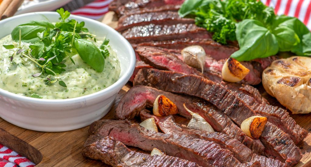 Grillad flankstek med örtmajonnäs