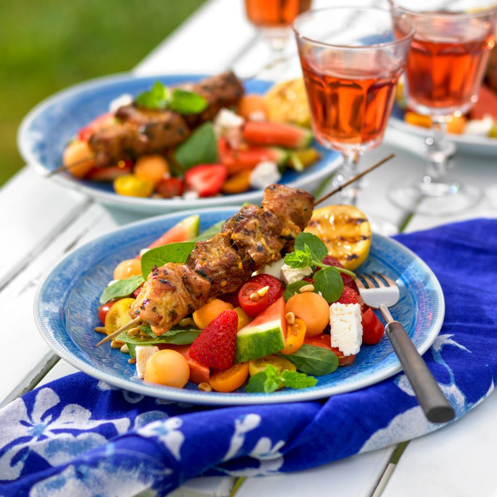 Kryddiga karréspett med melon- och fetasallad