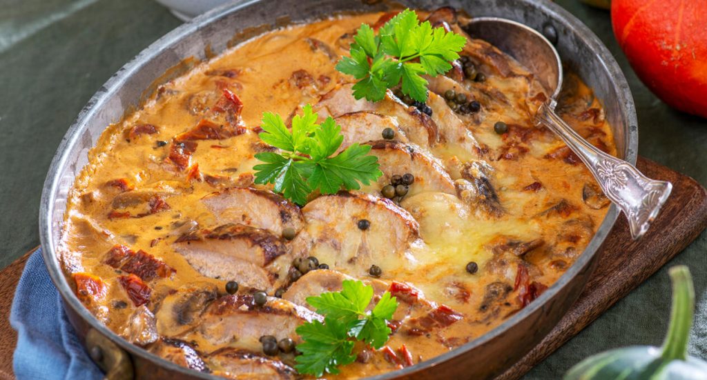 Fläskfilé med grönpepparsås