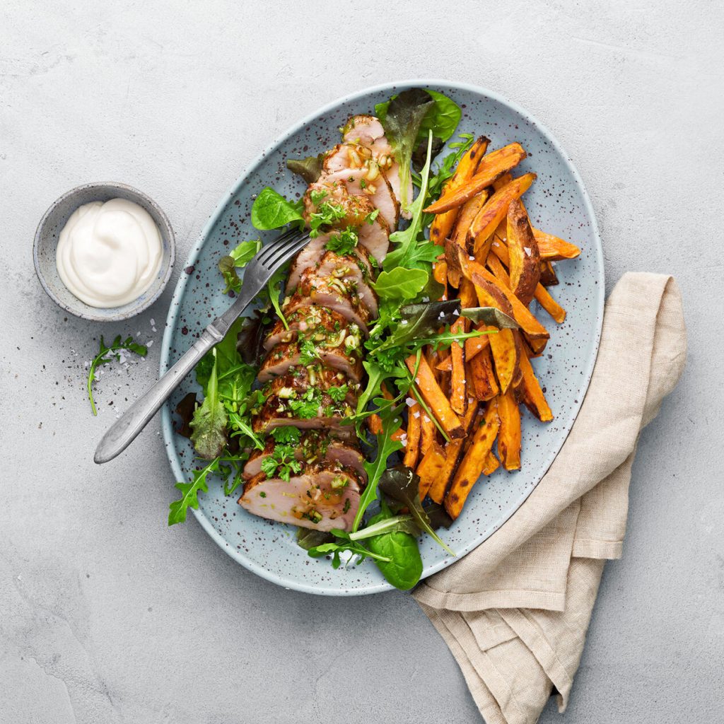 Kallmarinerad fläskytterfilé med sötpotatisfries