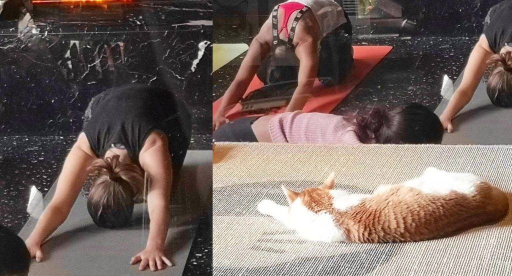 Här får katten vara med på yogan