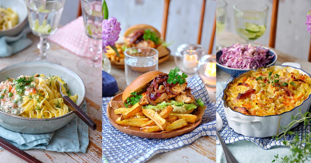 Mörkt, kallt och kanske lite tomt i plånboken. Januari känns inte alltid så festligt. Vi piggar upp stämningen med några härliga plånboksvänliga och goda recept, för vad sägs om en saftig, kryddig kycklingburgare toppad med rödlök och hummus, krämig pasta med rökt lax eller en matig grätäng där rotfrukterna och kasslern får sällskap av grädde och fransk senap.