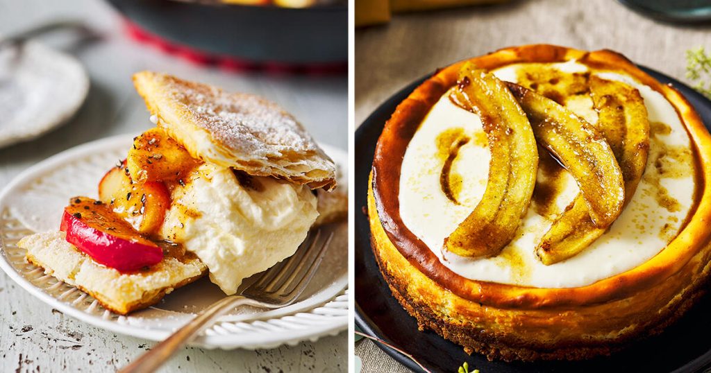 Få saker piggar upp så mycket som en ljuvlig dessert eller ett riktigt generöst fikabord. Vår matskribent Maria Zihammou bjuder på några av sina bästa recept, ljuvliga bakverk fyllda med choklad, kardemumma, len grädde och frestande karamelliserade bananer! Underbara att avrunda en middag med eller som gofika till en kopp kaffe.