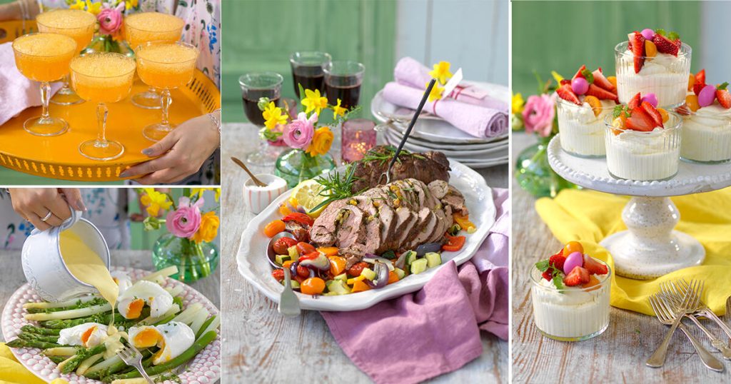 Släpp in våren till påsk och njut av späd sparris, saftig lammstek och en härlig dessert.