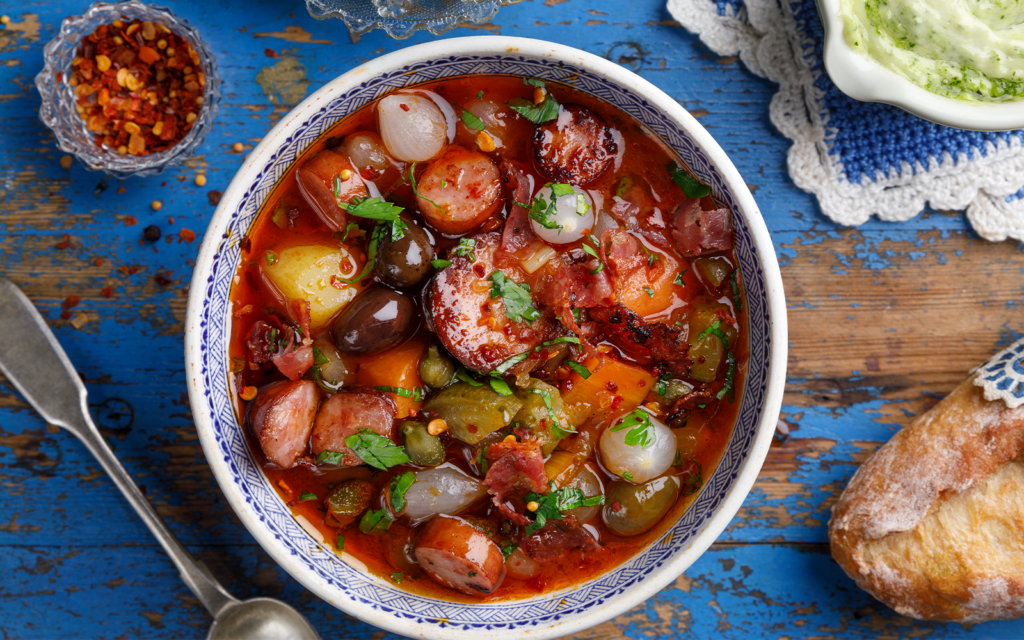 - 400 g korv, gärna olika sorter, t ex bratwurst, chorizo