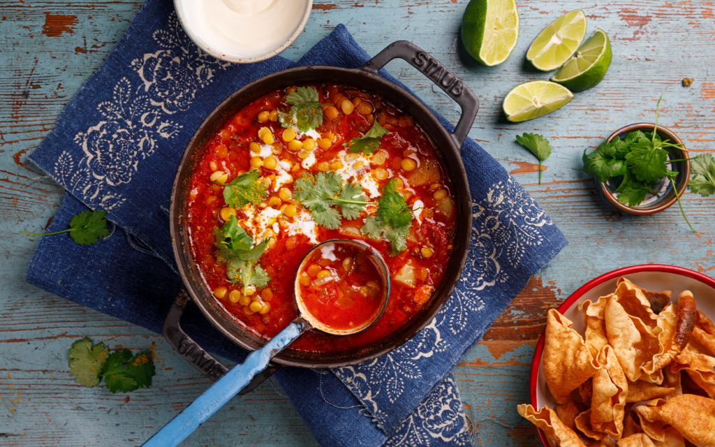 Späd soppan med resten av buljongen till önskad konsistens. Koka i ca 5 minuter och smaka av.