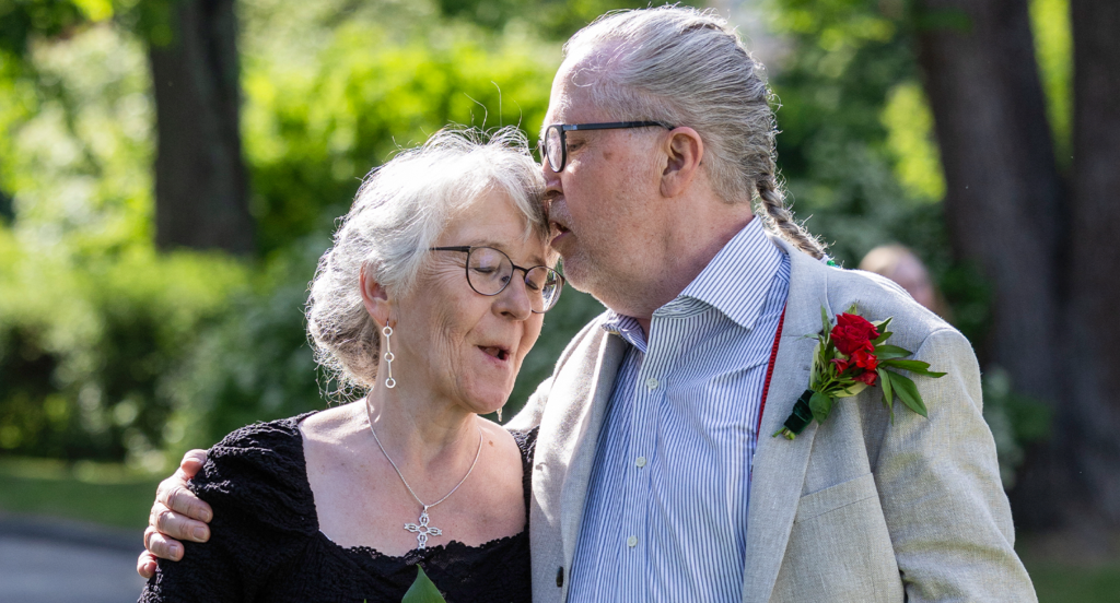 För Olle och Lena Linder är det inget som oroar. De har skrivna testamenten och ordning på juridiken. Vigseln handlade om kärlek.