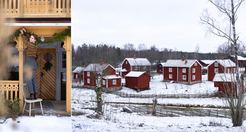 På 1960-talet köptes byn upp av Vitterhetsakademien som påbörjade ett omfattande renoveringsarbete. Bland annat rustade man upp Stensiögården vars stora gulmålade farstukvist ny pryds av granrisgirlanger. På dörren in till huset hänger två eneruskor med röda band och intill står en jultall och två mindre julgranar. När granen väl blev etablerad som julpynt i Sverige hade man den till en början främst utomhus, men så småningom fick den flytta in i huset.