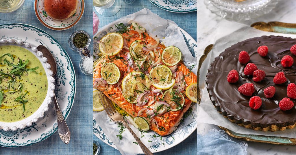 Härlig, lättlagad vårmeny – med ugnsbakad lax och ljuvligt chokladflan