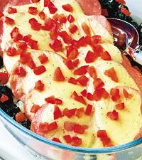 Falukorv på bladspenat