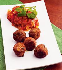 Tomat- och lökröra med färdiglagade köttbullar