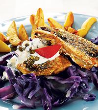 Pepparrotsströmming med rödkålssallad och potatis