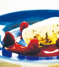 Dajm- och vaniljparfait med hallonsås