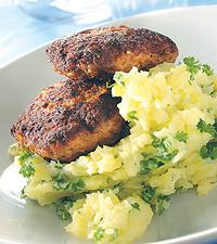Lammfärsbiffar med rosmarin och grovt potatismos med persilja
