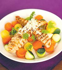 Grillad lax serverad med rotsaker och pepparrot