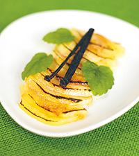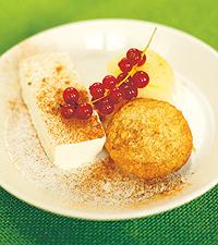 Dessertpäron med glass, kanel och flarn