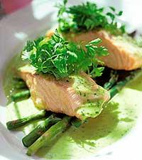 Saltbakad lax på grön sparris