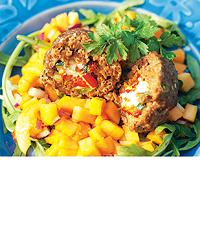 Fyllda färsbollar med papaya- och koriandersalsa