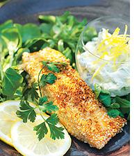 Sesamstekt lax med citron- och gurkcreme
