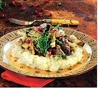 Skogswok på älg och mos med pesto
