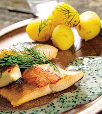 Halstrad röding med gräslökssås