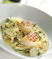 Karljohanssvamprisotto med grillade pilgrimsmusslor
