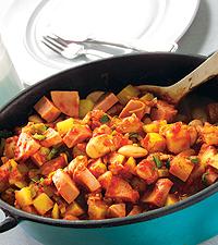 Korvgryta med purjolök och vita bönor