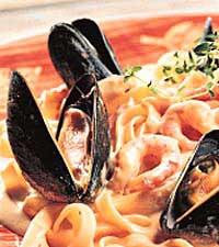 Pasta med musslor och räkor