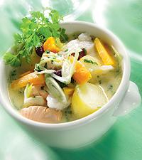 Fiskgryta med bönor och körvel