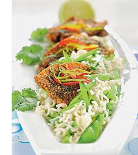 Stekt inlagd strömming på snabbnudelbädd