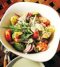 Potatis- och kräftsallad med avocado