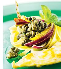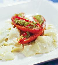 Stekt kyckling med tagliatelle och krämig pestosallad