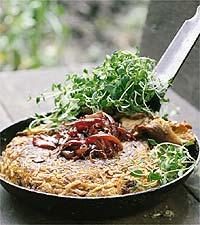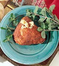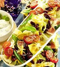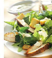 Pepparstekta kycklingbröst med romansallad och brödkrutonger