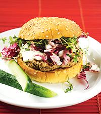 Hamburgare med grönpeppardressing