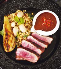 Rökt fläsk med bröd samt hoisin- och honungssås