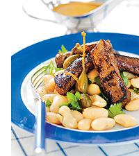 Kycklingpiccata med tomatsås, jasminris och romansallad