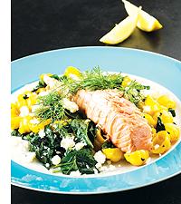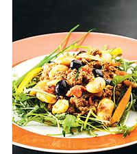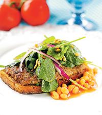 Pariserburgare med vita bönor och väldressad spenatsallad