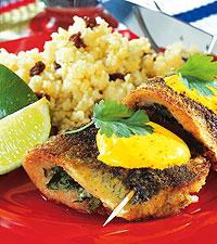Fyllda paprikor med ost- och skinksås