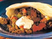 Kryddig färs i pitabröd