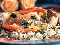 Ångkokt kolja på risbädd