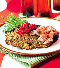 Råraka med pancetta samt lingon- och äppelröra
