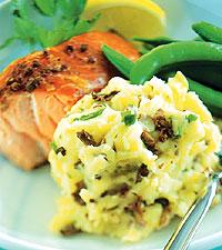 Kantarellmos med lax och bönor
