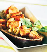 Aubergin fylld med lax- och vitlöksröra