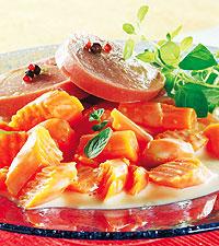 Citronstuvade morötter till kryddkokt falukorv