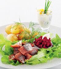 Matjestallrik och gräddfilssås med ägg
