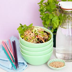 Nudlar med sesamfrön och edamame
