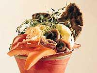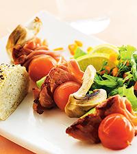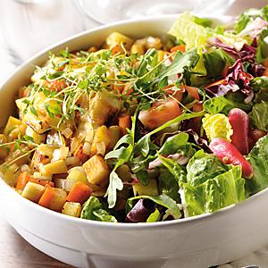 Grillade grönsaker och rotfrukter med stekt fläskkotlett