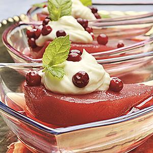 Lingonpäron med vispad vaniljsås