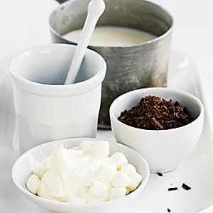 Varm mintchoklad med vispgrädde och marshmallows