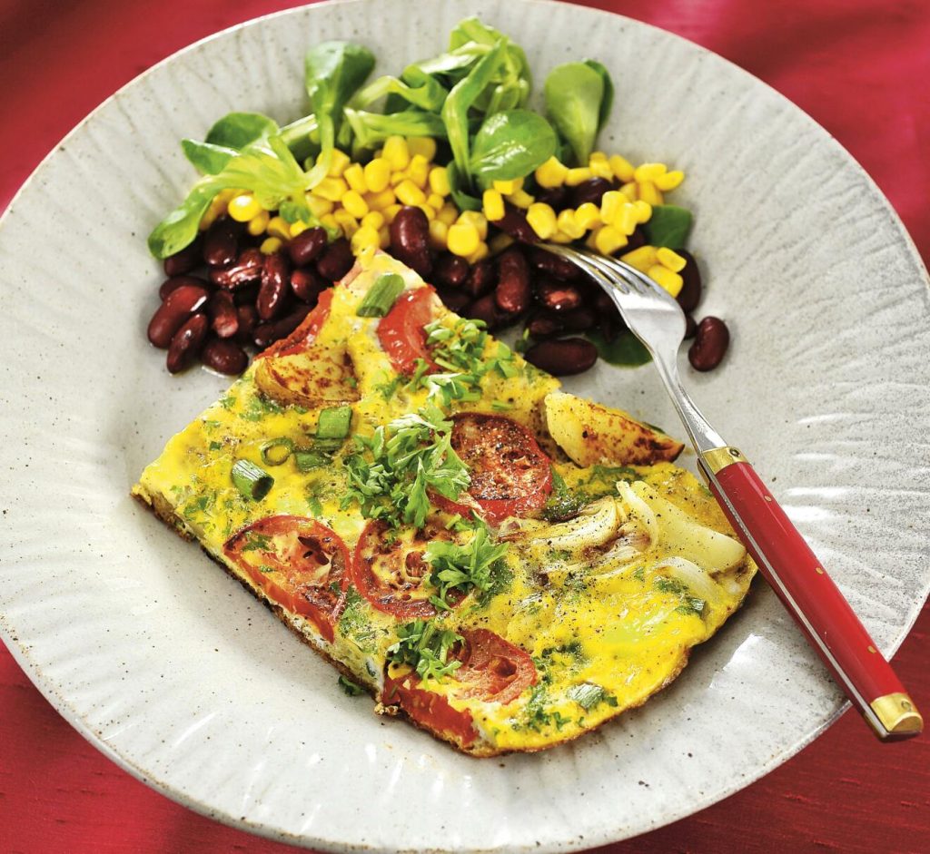 Omelett paysanne med bönsallad